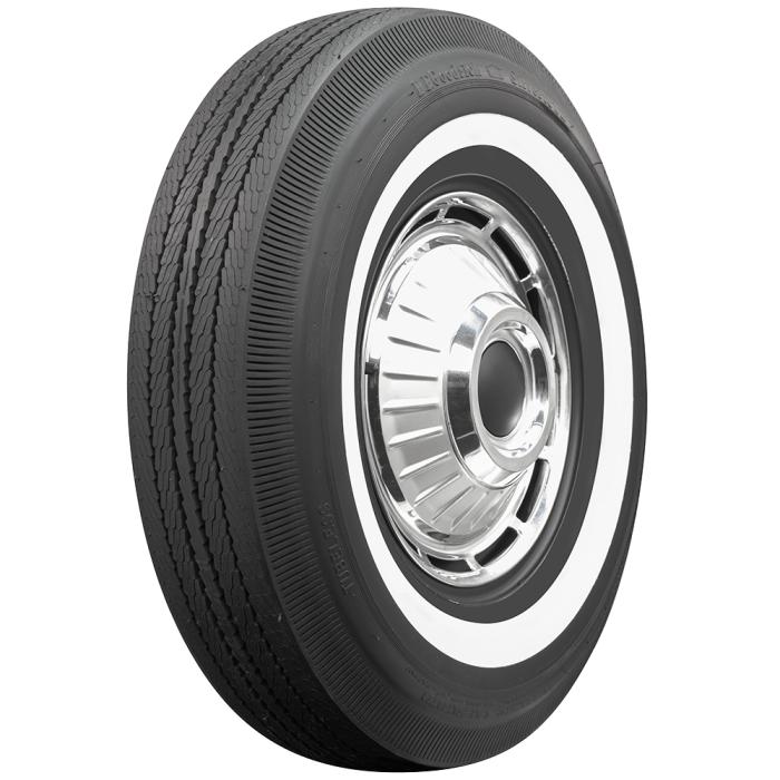 This product features a genuine narrow whitewall sidewall style. This means that the bright white rubber is added directly to the tire sidewall during initial construction of the carcass, resulting in a truly integrated, high-quality product after vulcanization. When we reference "narrow whitewall" tires, we typically mean a whitewall that measures less than two inches, but it can also mean a whitewall that does not reach all the way into the bead. Narrow whitewall tires are popular for many cars built in 1960's all the way into the 1990's.