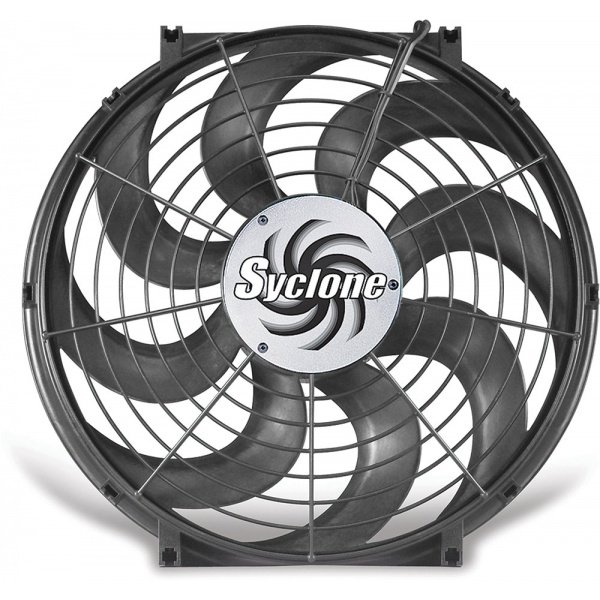 Flex-a-lite® reversible 16-inch Syclone S-Blade electric-fan. A powerful electric motor helps this fan move an impressive 2,500 cfm of airflow. Can be used as an auxiliary or primary cooling.