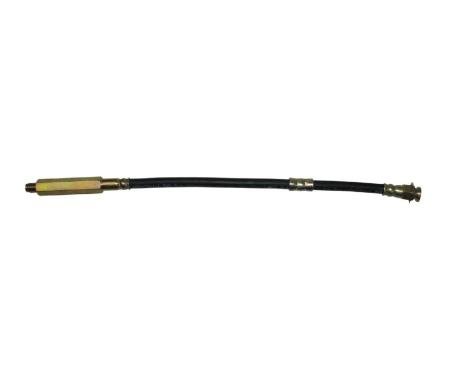 High Quality Reproduction Rear Brake Hose Rubber Reinforced Smooth-Texture Hoses Correct Silver-Cad Plated End Fittings 18 Length When it comes to your 1955, 1956, or 1957 Chevy classic, stopping power is paramount. In order for brake fluid to reach the wheel cylinder, causing the cylinder to press against the shoes and the shoes against the drum, it is imperative to have a quality set of brake hose. Despite their inherent resistance, brake hoses can often wear down resulting in dangerous leaks. If your hose shows signs of disrepair, do not wait another minute to replace them.