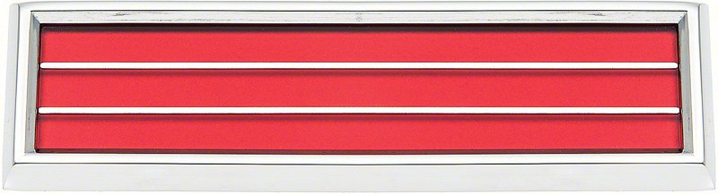 OER® reproduction of the original door panel reflector found on a wide variety of 1964-79 GM models. Manufactured in zinc die-cast metal, then polished and chrome plated for a brilliant shine. Lens is injection-molded manufactured with reflective material in the correct red color. Features a pre-attached backing plate with mounting feet for easy installation. For use on front or rear doors. Measurements: 6 1/4" long x 1 3/4" wide x 3/8" high. Sold individually. 2 required for 2 door models. 4 required for 4 door models.