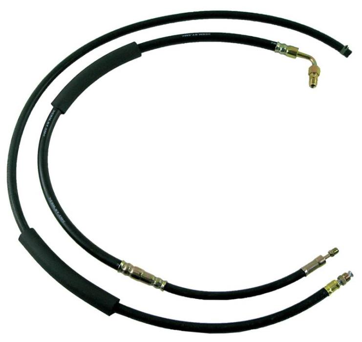 Power steering hose set with original style lower steering cylinder with aftermarket front mounted pump. Same as part number PSH410-A but without the cylinder hoses.