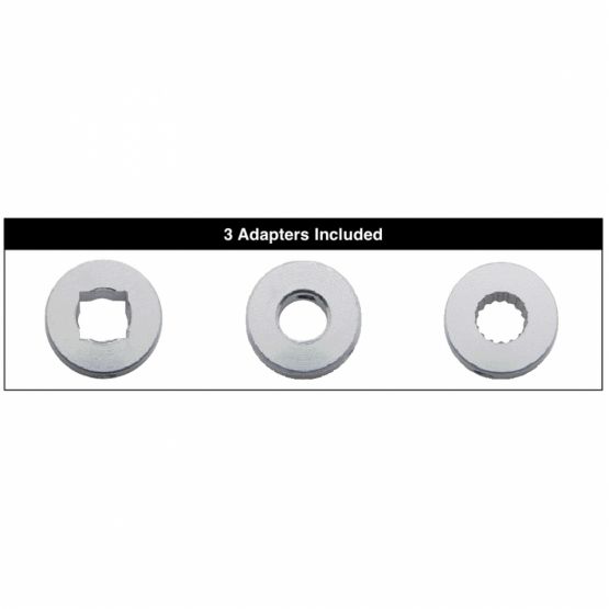• Universal application, 3 adapters included (circular, splined, & square).