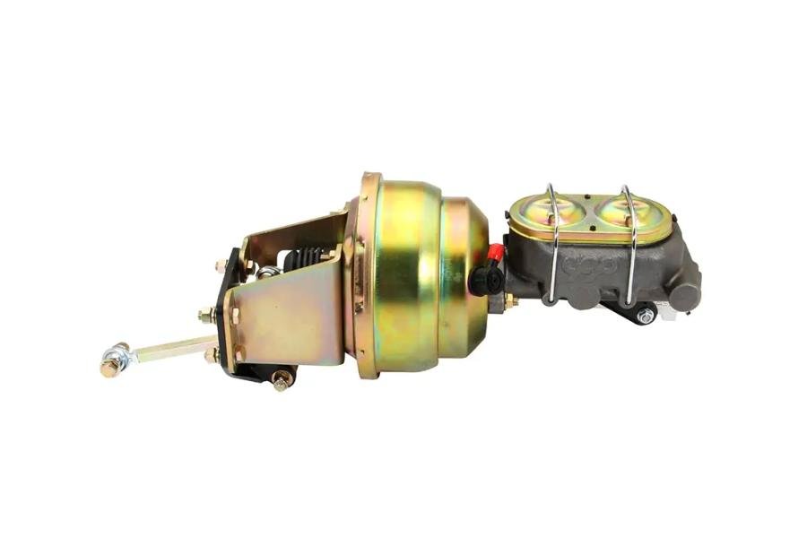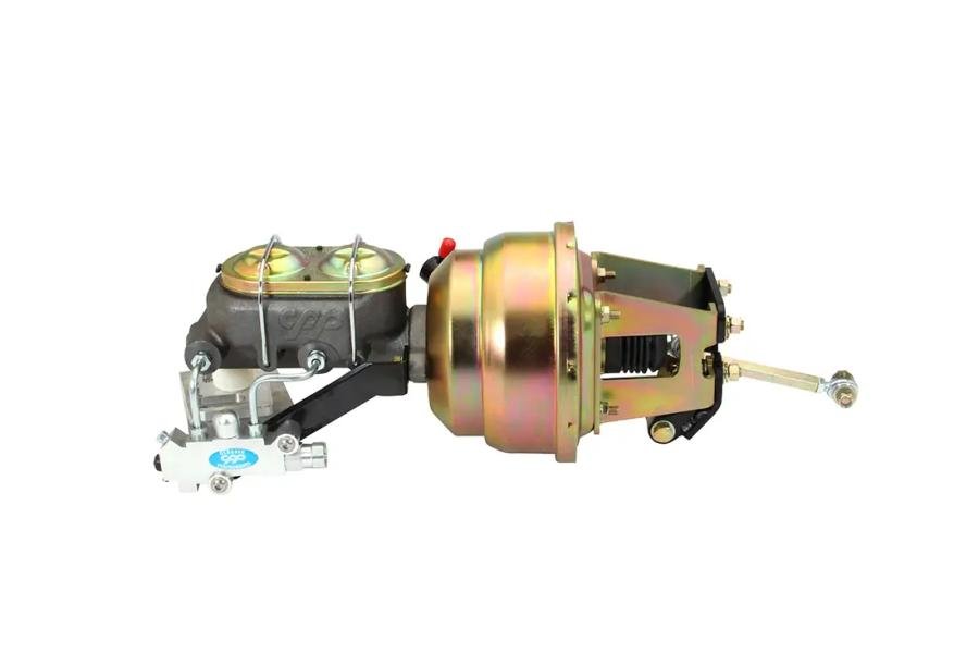 The CPP Complete Offset Power Brake Booster Kit (Part Number 5561BB24-OE-8D) fits 55-64 Chevy Full Size. Features an 8" dual gold plated booster. Includes master cylinder and proportioning valve combo. Offset 1.5" to driver's side and 2" up. Compatible with 2 and 4 wheel disc systems.