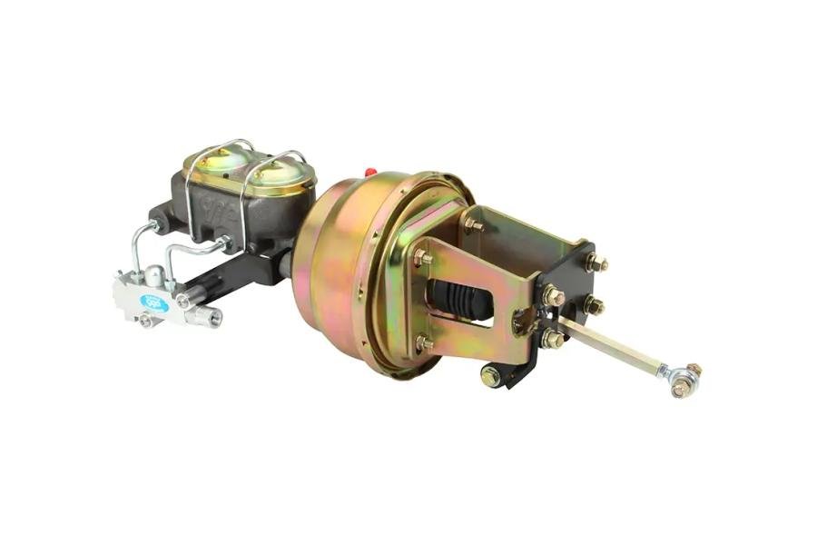 55-64 Chevy Full Size, 8" Dual Gold Plated Booster W/ Master Cylinder & Proportioning Valve Combo, Offset 1.5" To Driver's Side & 2" Up, works for 2 & 4 Wheel Disc