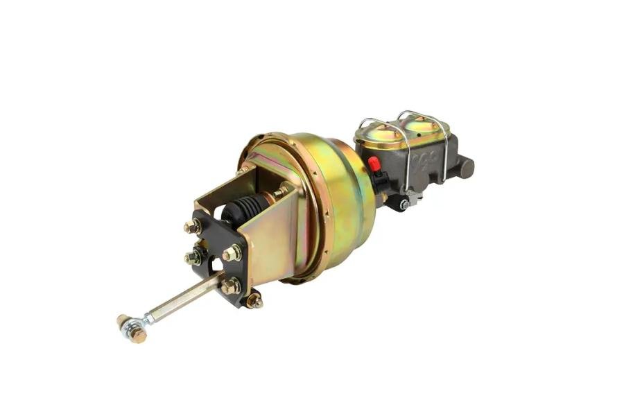 Description: Universal Gold Plated Power Brake Booster, 8" Dual, 3 3/8 x 3 3/8 Bolt Pattern, 2 3/8 Master Cylinder Pattern