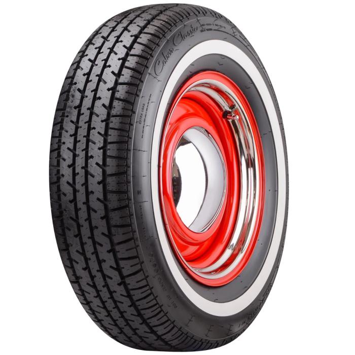 The Coker Classic Star Series 215/75R15 whitewall tire is a modern radial tire with best-in-class speed, load and traction ratings. This tire features a 1.30-inch whitewall, which is built into the tire from day one for a long-lasting tire that offers the perfect look for your classic car. The narrow whitewall fits many American classic cars from 1962 and later, and the 215/75R15 sizing is a direct replacement for 710-15 and G78-15 bias ply tires. Coker Classic Star Series tires feature a 480AA UTQG rating, giving them excellent treadwear, traction and temperature control. Another best-in-class rating is the T speed rating (118mph), as well as XL load rating, thanks to a reinforced sidewall. The low-noise tread looks and performs nicely, and this tire is DOT approved and E-marked for the European market. You won't find a better whitewall radial tire on the market, you have our word on it!