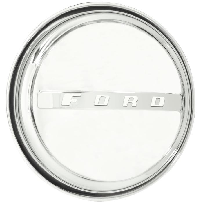 This is a 1947-48 Ford hubcap with 8 1/4 inch back inside diameter. These 1947 to 1948 Ford hubcaps feature FORD in all capital letters embossed across the center of the cap and have an 8 1/4 inch back inside diameter.