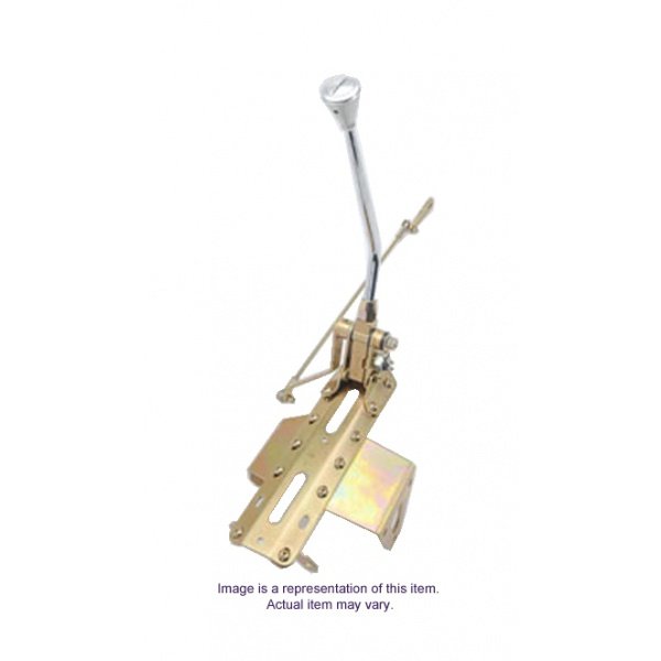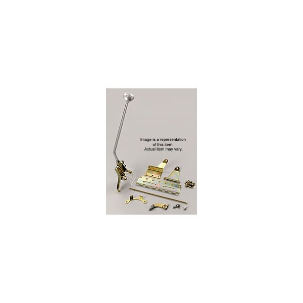 Features include: Neutral safety switch, operates with solid adjustable linkage, high quality rod ends, 360 degree lever rotation for extra leg space, lever adjustments for dash and seat clearance, Teflon-line shifter knob buttons for smooth operation, easy to remove shifter knobs for simple boot installation, and gold-iridted main plate and brackets.