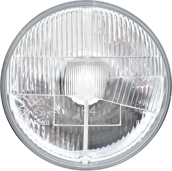 This conversion headlamp features lead crystal lens with "E" mark certified precision optics, stamped-steel reflector and self-sealing rubber boot to protect the optic unit from dust and moisture. This unit is equipped with the halogen H4 60/55W bulb.
