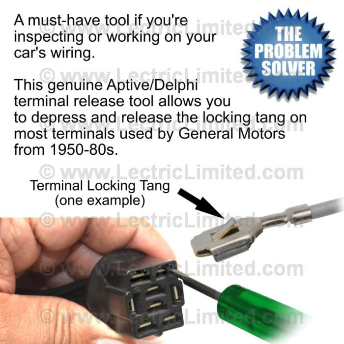 Lectric Limited 1935-2012 American Motors / Chrysler / DeSoto / Dodge / Plymouth / Ford / Mercury / Buick / Cadillac / Chevrolet / GMC / Oldsmobile / Pontiac / Jeep / Studebaker Terminal Removal Tool 12094429Lectric Limited 1935-2012 American Motors / Chrysler / DeSoto / Dodge / Plymouth / Ford / Mercury / Buick / Cadillac / Chevrolet / GMC / Oldsmobile / Pontiac / Jeep / Studebaker Terminal Removal Tool 12094429Lectric Limited 1935-2012 American Motors / Chrysler / DeSoto / Dodge / Plymouth / Ford / Mercury / Buick / Cadillac / Chevrolet / GMC / Oldsmobile / Pontiac / Jeep / Studebaker Terminal Removal Tool 12094429
