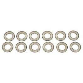 Reproductions in special thick flat round washer used with small block exhaust manifold bolts. Set does one engine.