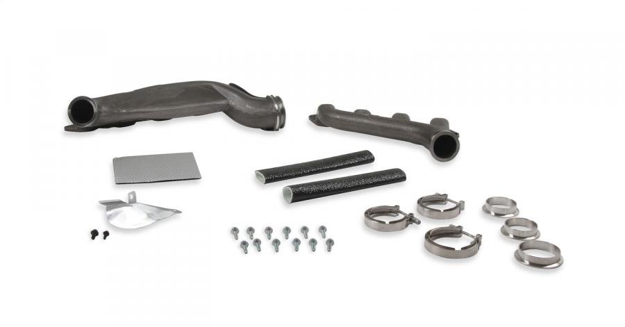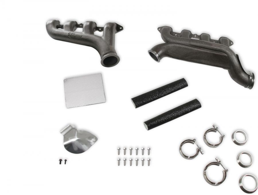 Holley's new LT Turbo Exhaust Manifolds provide a simple and effective way to add a turbo to your LT powered car or truck. These turbo manifolds are made from High-Silicon-Moly ductile iron, which are much more durable and retain more heat than fabricated headers. This added heat retention aids in turbo efficiency. Their compact design allows for better fitment in multiple applications and better spark plug access than many fabricated headers do. The manifold kit includes v-band clamps and flanges, heater hose heat shield, and header bolts. These manifolds work with most common LT swap parts (i.e. motor mounts, swap oil pan, and accessory drive systems) & provide the basic building blocks needed to complete a custom turbo system for your GM LT engine.