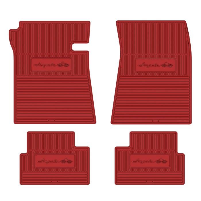 • 1961 IMPALA NEXT GENERATION CUSTOM VINTAGE RUBBER STYLE FLOOR MATS DESIGNED TO FIT THE ENTIRE FLOOR PAN OF YOUR CAR. GM LICENSED LOGOS ARE FEATURED ON BOTH FRONT AND REAR MATS.