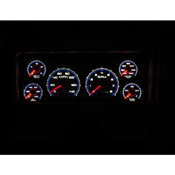 NVU gauge packages for your 1982-1983 Malibu with the 6 gauge setup take your dash to the next level with features and styling you won't find anywhere else. Unique layered effect with styled graphic window, styles that are bold and match the theme of your build, and proven GENII stepper motor internals, this setup is designed to function as well as it looks. Incorporated turn signals, warning lamp, check engine and hi beam are built into the upper lens and are invisible when off for a clean, professional look. LED back-lit graphics with lit pointers are easy to see at night as well as visually stunning. Installs in factory location and uses OE front bezel for a great fit.