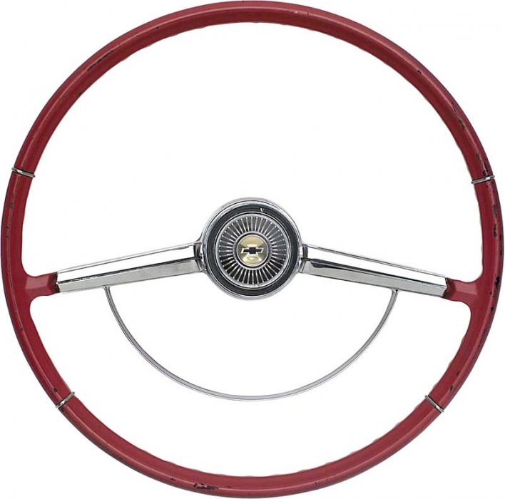 Reproduction of the original steering wheel designed for use on 1964 Impala models. This precision injection molded steering wheel is designed to replace the cracked or damaged original wheel. Steering wheel features a correct original looking finish and the proper spacing between the chrome steering wheel ornaments. Each wheel also features a quality die-cast reproduction of the chrome horn ring. Use your existing mounting hardware to install the wheel.