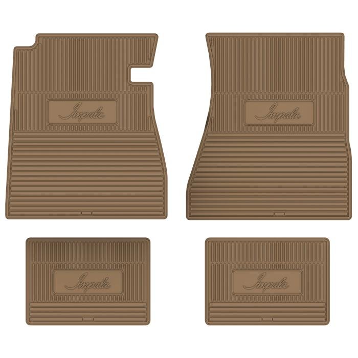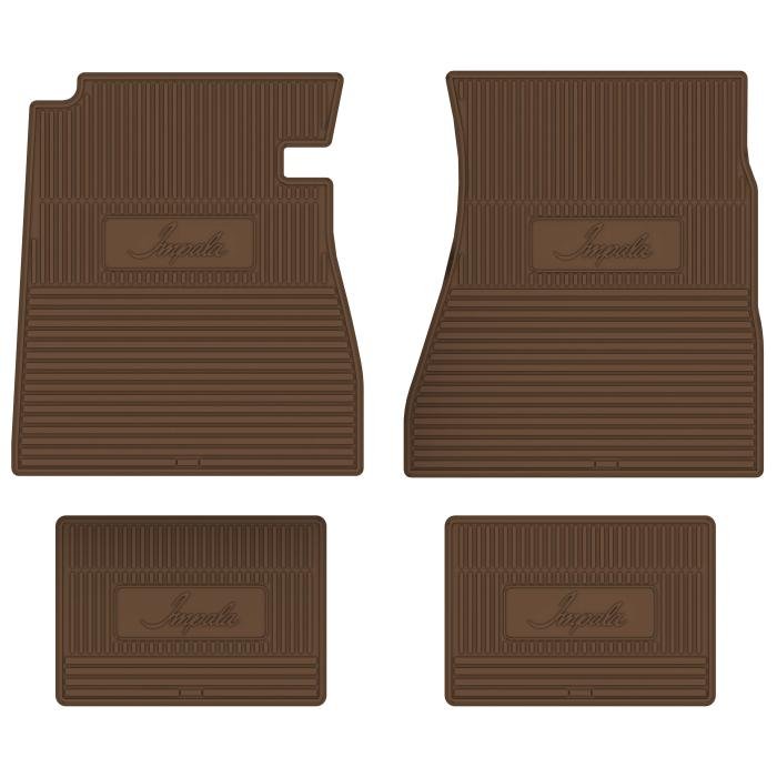 • 1969-70 IMPALA NEXT GENERATION CUSTOM VINTAGE RUBBER STYLE FLOOR MATS DESIGNED TO FIT THE ENTIRE FLOOR PAN OF YOUR CAR. GM LICENSED LOGOS ARE FEATURED ON BOTH FRONT AND REAR MATS.