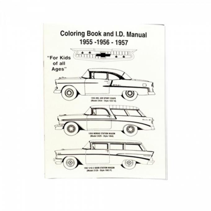 1955-57 Coloring Book & ID Manual for Chevy Bell-Air Coupes, Sedans & Convertibles as well as Nomad Station Wagons. Lists Exterior Colors & 2 Tone Combinations. Over 40 pages of coloring fun! "For Kids Of All Ages"