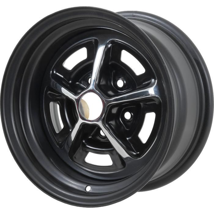 This steel replacement "Road Wheel" for 1969 and later Mopar and other models is identical to the Magnum 500 with the exception of a black powder coated rim. Center cap, trim ring and lug nuts sold separately.