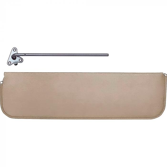 The original sun visors and brackets consisted of colored cardboard with a polished bracket and edging. Our replacement visors are exact reproductions of the originals and are shipped in protective boxes so they are not scratched or damaged in transit to you. Simply attach the bracket to the visor, and then to the headliner area and your ready. Fits left hand (driver) side.