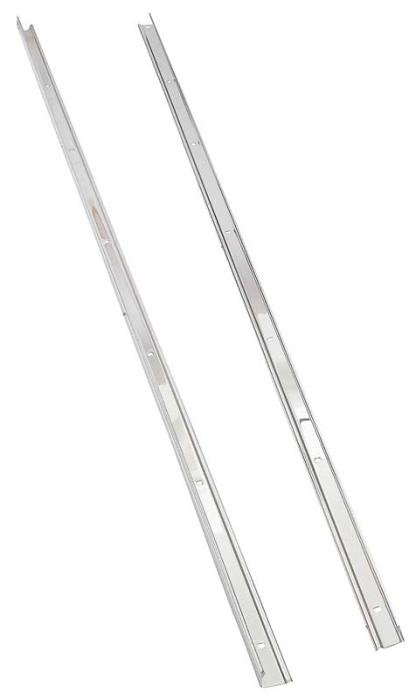 Reproduction of the original angle strips that attach the side boards on 1954-59 Chevrolet and GMC Pickup Stepside short bed models. These angle moldings are bolted to the wood and spot welded to the bed side. Features pre-punched square holes in the original bolt pattern. Strips are 1-1/2" wide x 1" tall and are roll formed from 18 gauge 430 polished stainless steel. Sold in pairs.