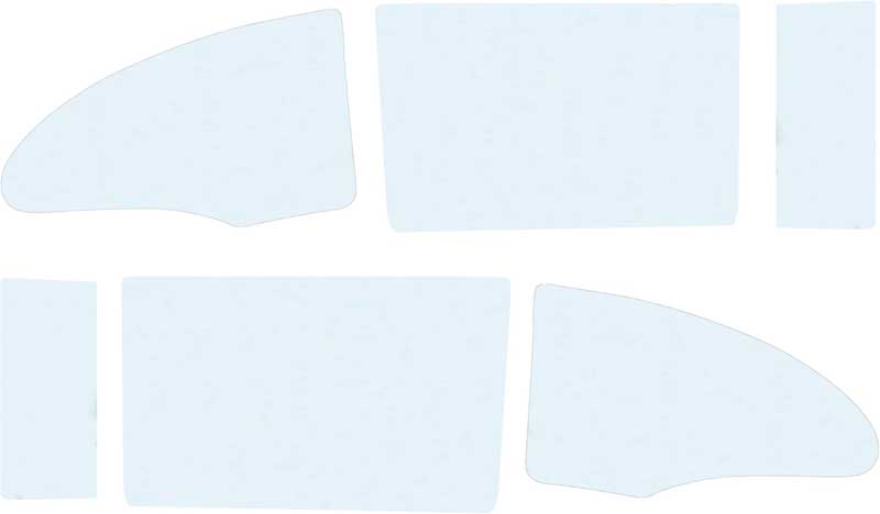 Reproduction side window glass for 1955-57 Chevrolet passenger two door hardtop models. Set includes (2) vent, (2) door and (2) quarter pieces. Each side window glass set is professionally packed with extra care to prevent damage during shipping.