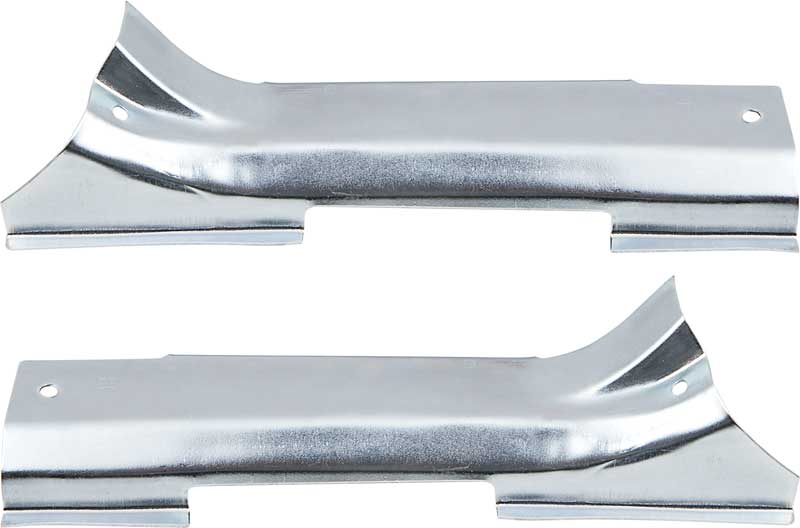 Reproduction tailgate hinge covers for 1955-57 Chevrolet One-Fifty Series, Two-Ten Series, or Bel Air station wagon models only. Each hinge cover is manufactured to OE specifications replicating the original configuration and fitment. These covers fit on the tailpan and cover the hinge screws. Features correct pre-drilled mounting holes for installation. NOTE: Refer to part number # TF401062 for 1955-57 Nomad model hinge covers.