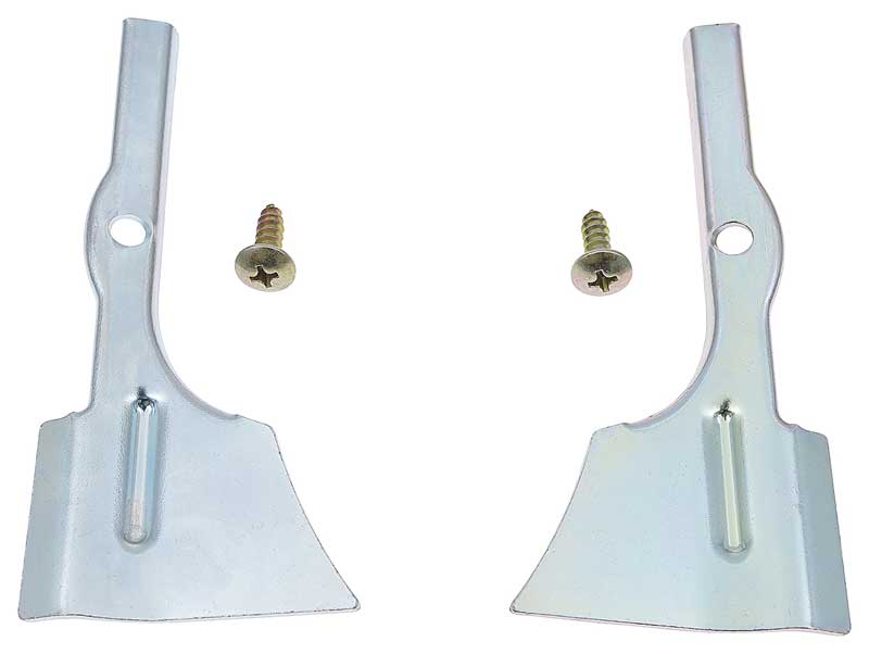 OER® reproduction of the original windshield corner molding clips designed for 1955-57 Chevrolet Bel Air, 210 and 150 models (exc. 1955 150 models. When replacing trim pieces on your 1955-57 Chevrolet, it's a good idea to replace worn or damaged clips to insure proper fit. These specialized steel clips are designed to retain the corner moldings on the lower corners of the windshield. Manufactured in quality stamped steel and finished in a bright corrosion-resistant finish as original. Includes driver (LH) and passenger side (RH) retainer clips and screws for installation.