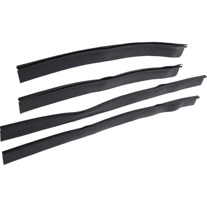 Reproduction of the original style glass setting channel for use with 1955-57 Chevrolet Bel Air, One-Fifty Series, Two -Ten Series, and Nomad sedan and station wagon models. These rubber seals secure the side glass to the metal channels. One set required per vehicle.