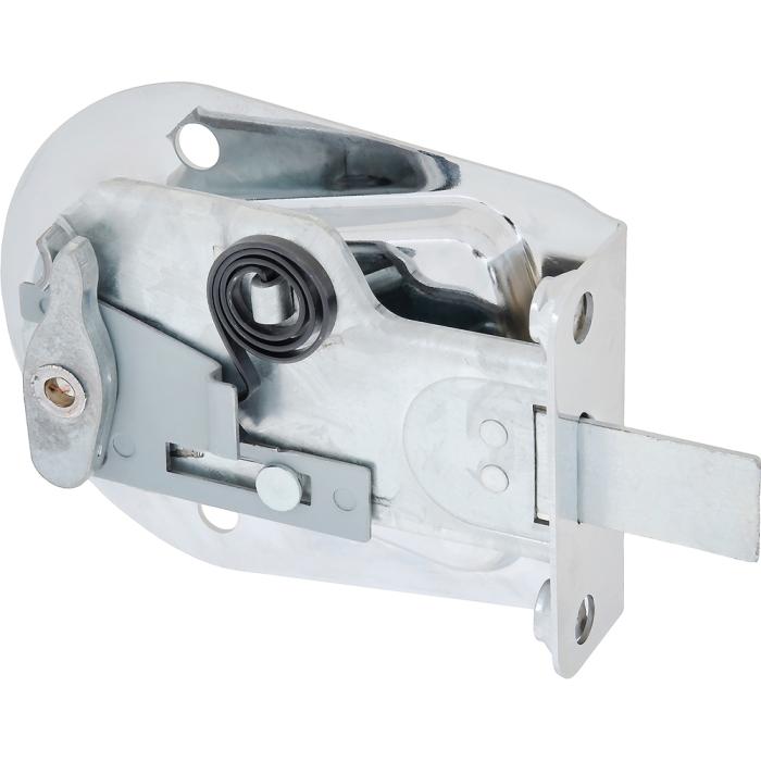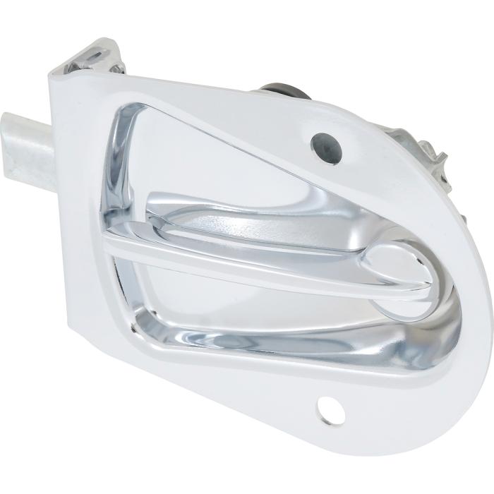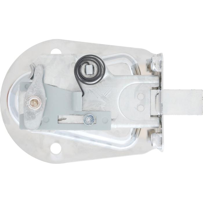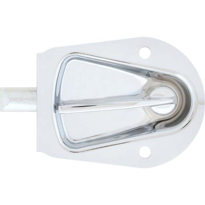 Reproduction tailgate latch assembly for the RH side on 1955-58 Chevrolet Cameo or GMC Suburban Carrier pickups. Housing is manufactured in stamped steel and plated in bright chrome for an original appearance. Handle is die-cast metal with bright chrome finish, as original.