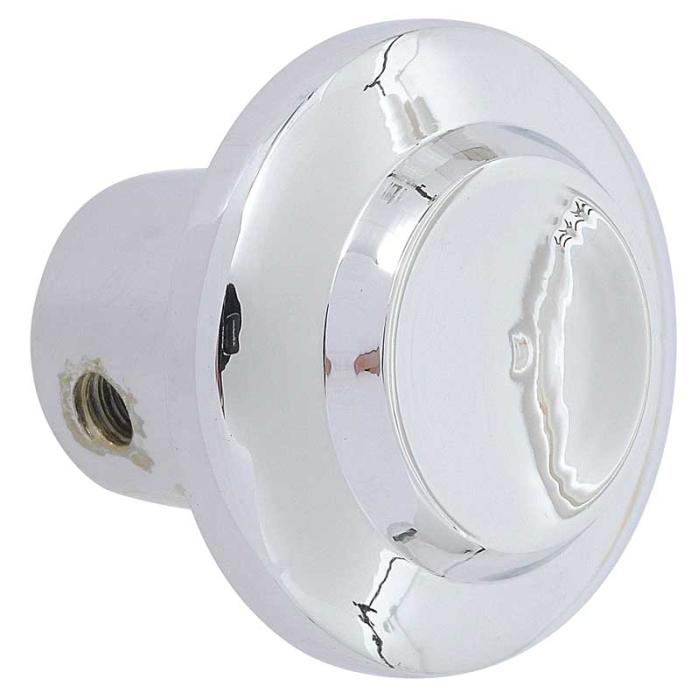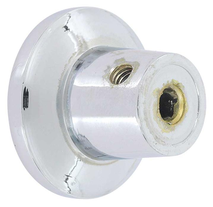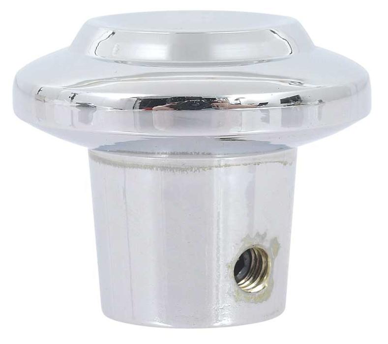 Reproduction of the original radio control or heater knob for 1955-59 Chevrolet and GMC truck models. This knob is manufactured in die-cast zinc to factory specifications and replicates the original in design, appearance, and fitment. Each knob features a bright chrome polished finish. Features a 3/16" opening and set screw in the side to tighten onto the shaft.