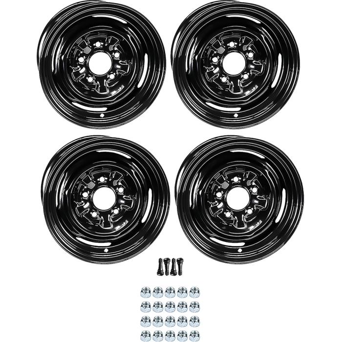 Additional InformationApplication Notes: GM factory style steel wheels for most Chevrolet passenger cars from 1955-87 but may fit other years. Please make sure offset, backspacing and lug pattern are correct for your vehicle before ordering.