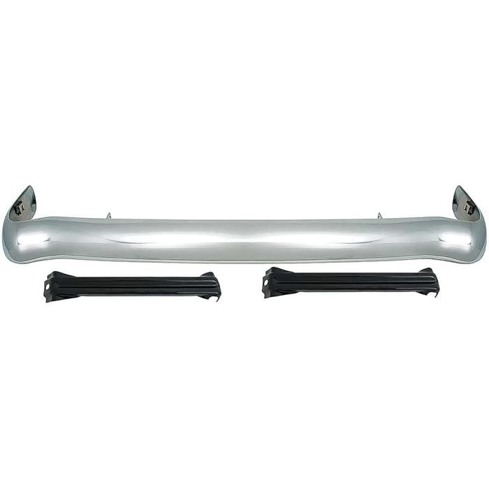 Reproduction of the rear bumper for 1955 hardtop, sedan and convertible models. Designed and manufactured after the original, featuring triple chrome plating along with correct contours. Comes with the center brackets welded on. Along with side bumper brackets and hardware.