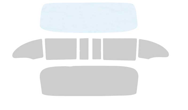 Reproduction complete window glass set for 1957 Chevrolet 2 door hardtop passenger car models.