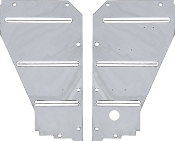Reproduction of the original radiator side filler panels designed for use on 1957 Chevrolet Bel Air, One-Fifty Series, Two-Ten Series, Nomad, and Del Ray models. These radiator side filler panels install between the radiator and the inner fender walls. Each side filler panel is manufactured in quality stamped steel and features a beautiful chrome plate finish. Sold in pairs.