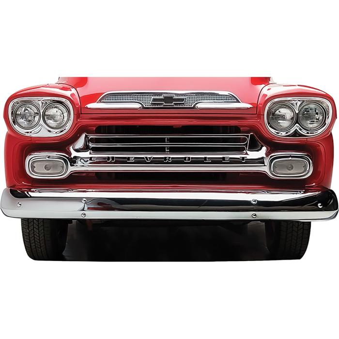 Reproduction front grill assembly for 1958-59 Chevrolet pickup trucks. Each reproduction grill is manufactured to original factory specifications offering a great fit and beautiful triple chrome plated finish. This outstanding reproduction is designed to replace the original GM grill exactly and includes correct mounting locations for installation. Replaces OE #'s 3750327, 3760328.