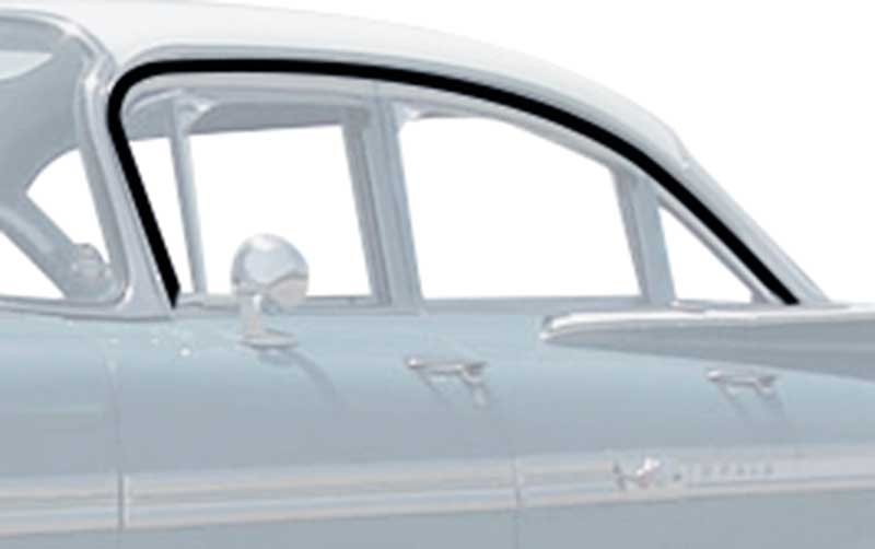 Quality reproduction of the original roof rail weatherstripping designed for 1959-60 Impala and Full size GM models. This quality reproduction seals the area between the roof rail and the door glass eliminating water and other elements from entering the passenger or interior area. Comes complete with correctly located pins that will fit the holes on the vehicle for installation. Includes RH and LH roof rail weatherstrips.