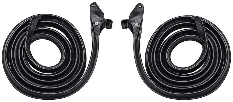 Reproduction door frame weatherstrip set for Chevrolet Impala and other GM Full Size 2-door hardtop and convertible models. This reproduction is designed to replace the original exactly featuring the correct molded ends and the same configuration as original GM seals. Replacing the original worn out or cracked weatherstrip will create a weather-tight seal to keep water and other elements out of your vehicle's passnger compartment when the door is closed. Sold in pairs. Includes RH and LH weatherstrip.