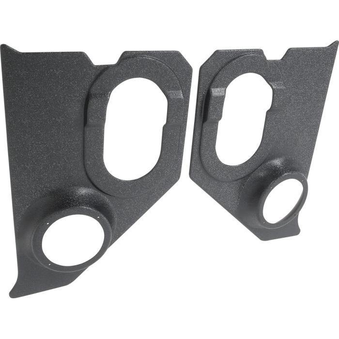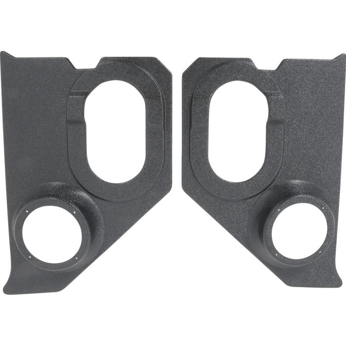 Reproduction style interior kick panels for 1960-66 Chevrolet and GMC pickup, and Suburban models. Each panel is manufactured in quality blister molded ABS and features molded speaker pod cut-out locations with pre-drilled mounting holes designed to house the 6.5" diameter speakers of your choice. Kick panels come in black. Paint to desired interior color. Sold in pairs. Speakers sold separately. Refer to part number # 154928 for 6-1/2" coaxial speakers designed to fit the kick panels.