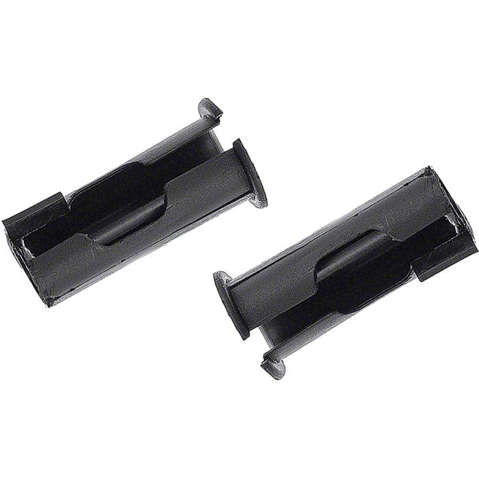 Replacement sun visor support sleeve/bushing for various 1960-73 Chevrolet, Buick, Oldsmobile, and Pontiac models. Manufactured to factory specifications, this black plastic bushing fits into the sun visor pivot bracket and provides smooth, stable movement of the sun visor arm. Each set includes both LH and RH sleeves, designed to restore proper visor function and eliminate looseness or sagging.