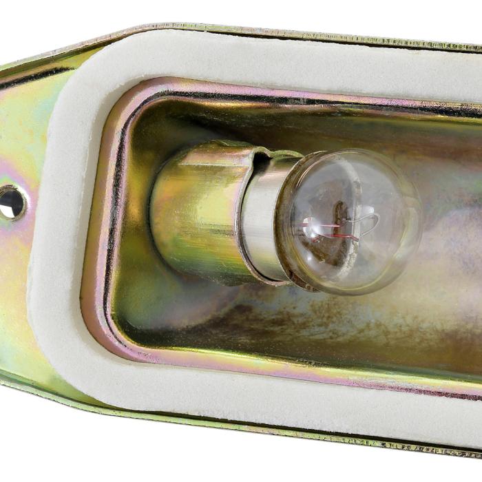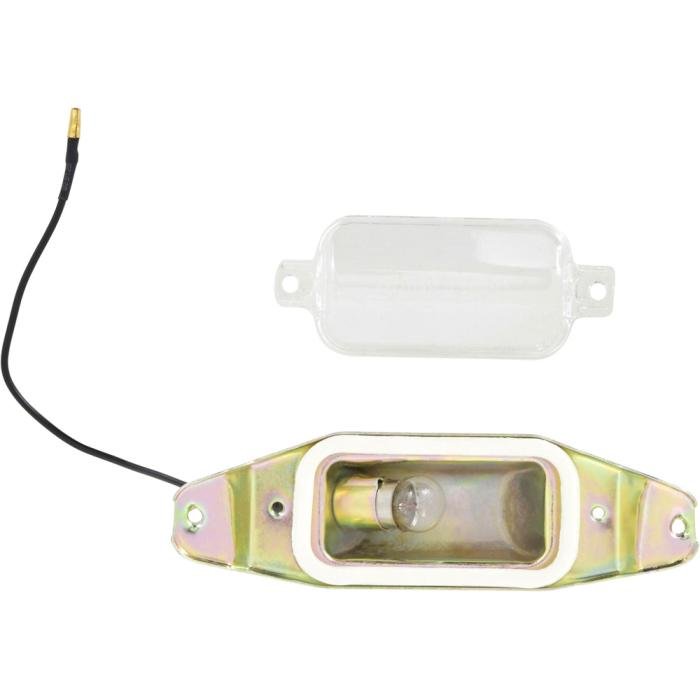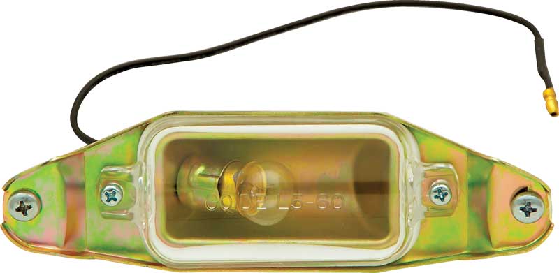 Reproduction of the original license lamp assembly for use with 1961-64 Chevrolet Impala and Bel Air models except station wagon. This is a complete license lamp assembly including the lens, bulb, wiring and mount bracket. Housing is manufactured in stamped steel and anodized in gold for corrosion resistance.