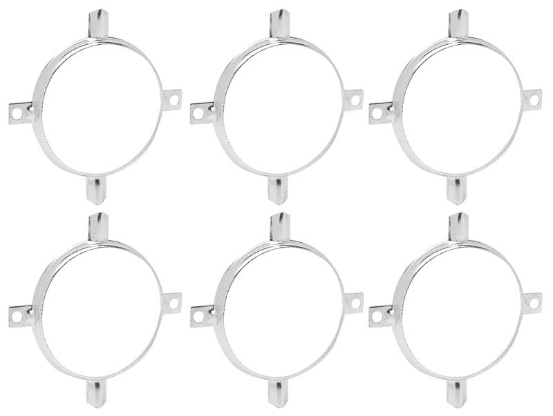 Reproduction tail lamp / back-up lens trim ornament set for 1961 Impala models. Each trim ring is manufactured in anodized aluminum as original and surrounds the tail lamp lens. Replaces the original worn or pitted bezels. Correct reproduction of the factory 1961 Impala bezel, but will also fit 1960 Impala for a custom appearance. Sold in set of 6 trim ring bezels. Replaces RH and LH sides.