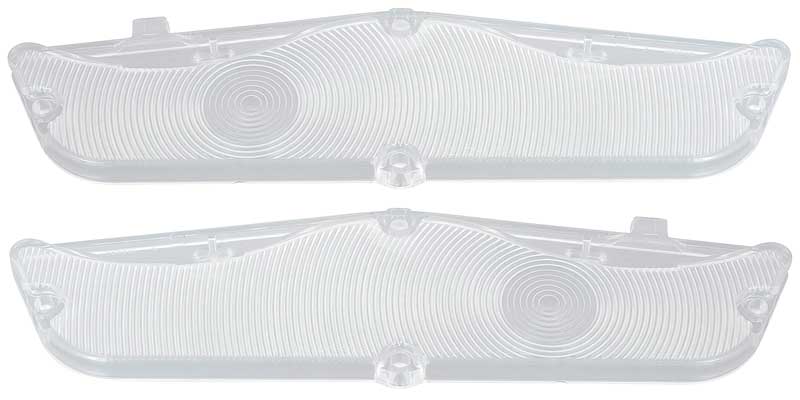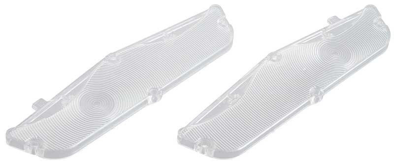 Reproduction of the original park lamp lens designed for use on 1962 Impala and Full Size Chevrolet models. Injection molded in UV stable acrylic ABS to original specifications. Features correct SAE and "Guide" markings for an authentic appearance. Sold in pairs. Includes RH and LH lenses.