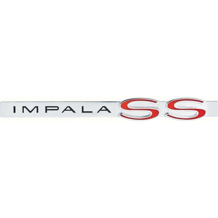Correct reproduction of the original Impala SS emblem installed on the rear trunk lid of all 1962 Impala models with the Super Sport option. Manufactured in quality die-cast zinc metal including correct mounting studs that replicate the original in quality, fitment and appearance. This emblem features the word "IMPALA" with the SS insignia in in red with a chrome border. Mounting hardware included. Sold in pairs.