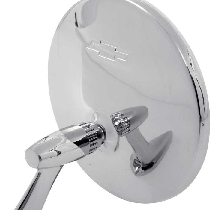 • Authentic reproduction of the factory GM mirror with correct ribbed neck and Bow Tie emblem