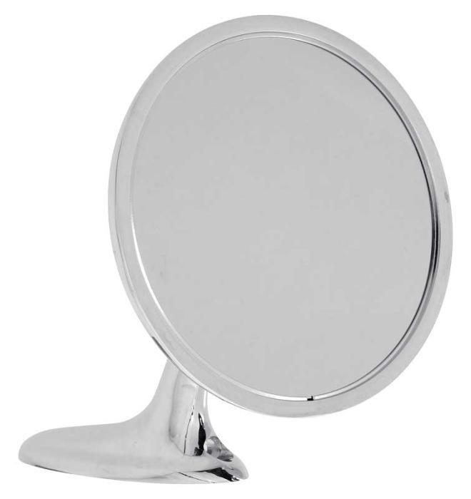 Excellent reproduction of the original outer door mirror designed for use with various 1963-65 GM models. Each mirror is manufactured from premium zinc die-cast metal and finished in high-quality chrome, precisely replicating the factory original in both appearance and fitment. This mirror features a ribbed neck and a Bow Tie insignia cast into the rear of the mirror head for authentic detailing. Includes a mirror-to-door bracket, mirror base gasket, and mounting screws for installation. Fits RH or LH doors. Sold individually. Note: For use with 1963 1st design (early production) Corvette models.