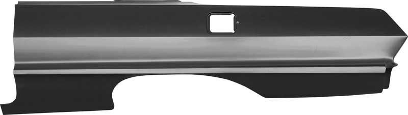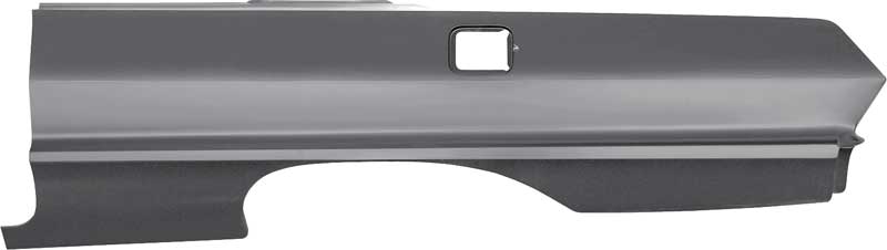 Reproduction full-style quarter panel for 1963 Chevrolet Impala 2-door hardtop models. Each panel is precision-stamped in steel to factory specifications, featuring the correct body contours for an authentic appearance and exact fit. Includes the trunk ledge and fuel door opening for proper alignment and function. Does not include the door jamb area.