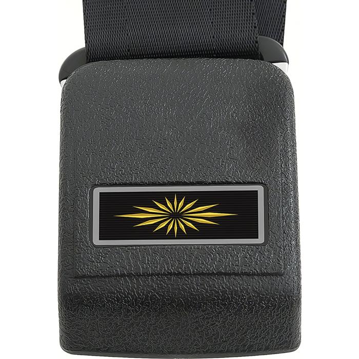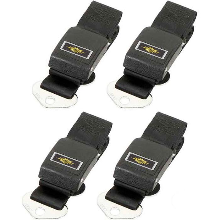 OER 1964-66 Nova, 1966 Impala, Caprice, Chevelle, Standard Front & Rear Seat Belt Set, Gold Decals, Black, 4 Piece Set *R190AOER 1964-66 Nova, 1966 Impala, Caprice, Chevelle, Standard Front & Rear Seat Belt Set, Gold Decals, Black, 4 Piece Set *R190A