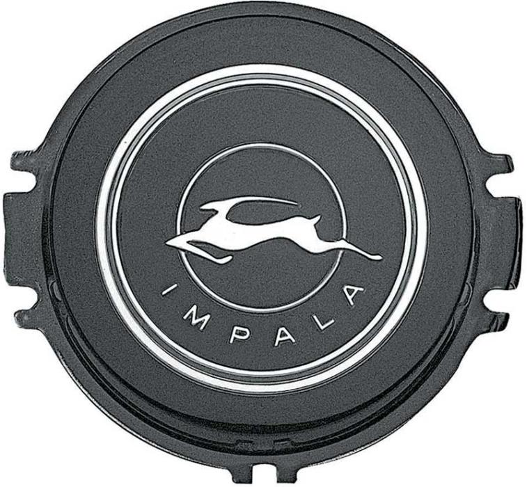 Authentic reproduction of the original horn cap emblem designed for use on 1964 Impala models. Each emblem is manufactured in injection molded ABS to factory specifications featuring the correct Impala logo and lettering with black coloring and silver accents as original. Will fit and install as original.