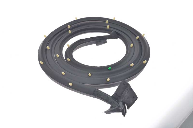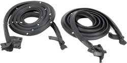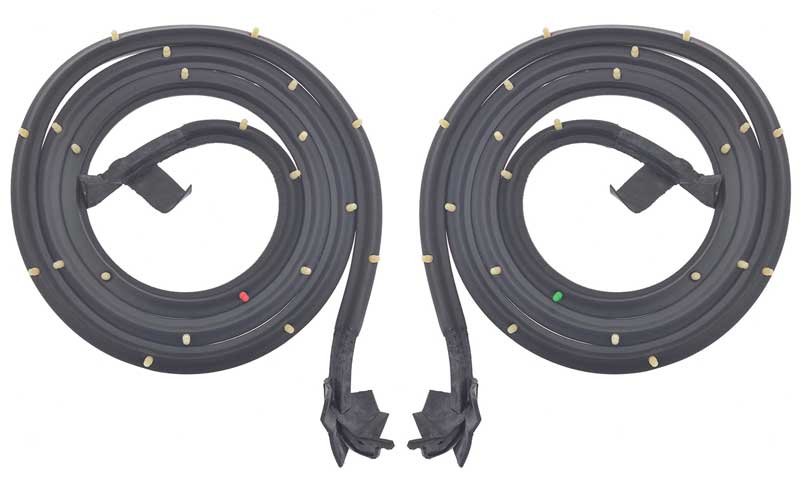 Reproduction of the original door frame weatherstrip that installs on the outer frame of the door on 1965-66 Buick, Cadillac, Chevrolet, Pontiac, and Oldsmobile Full Size 2 door hardtop or convertible models. Manufactured in the correct configuration which allows easy installation when replacing the worn out or missing original weatherstrip. Includes the proper "push-in" pins to attach the rubber to the door frame. Sold in pairs. Includes RH and LH door frame weatherstrip.