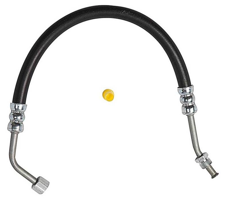 Replacement power steering pressure hose for 1965-68 Impala, Bel Air, and Biscayne models with small block engine. A leak in your power steering system can make a mess of your engine compartment, your driveway and garage floor. You can also burn up your power steering pump by driving your classic when it is low on fluid. Replace your worn out or cracked power steering hose before these problems occur. The pressure hose connects from the power steering pump to the steering gear box inlet.